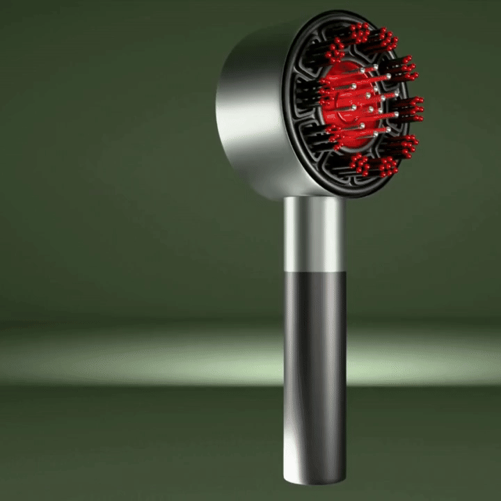 Red light therapy boosts circulation to awaken hair follicles and strengthen roots, while gentle vibration massage eases tension for a healthier scalp.